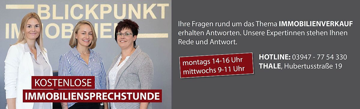 Jeden Montag von 14-16 Uhr und jeden Mittwoch von 9-11 Uhr stehen Ihnen unsere Expertinnen für Ihre Fragen rund um das Thema "Hausverkauf" zur Verfügung.