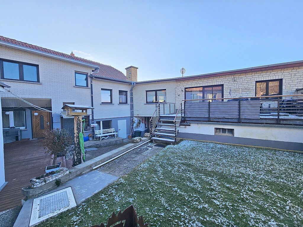 In diesem charmanten 3 Seitenhof aus dem Jahr 1909 und 1990 mit Massivbauweise und einer Wohnfläche von ca. 280 m² finden Sie genügend Platz für Ihre Familie. Auch eine Aufteilung in 3-4 Wohneinheiten wäre möglich. Das Gebäude erstreckt sich über zwei Etagen. Im Erdgeschoss des Hinterhauses befindet sich eine unsanierte 3- Zimmer-Wohnung mit ca. 82 m², 2 Zugängen und Terrasse, sodass eine Teilung gut möglich wäre. Im Obergeschoss des Hinterhauses befindet sich eine 3- Zimmer- Wohnung auf ca. 82 m² mit eigenem Garten und vielen Abstellräumen. Im vorderen Teil des Gebäudes befindet sich im Obergeschoss eine 4-Zimmer-Wohnung, welche ab dem Jahr 2009 komplett saniert wurde. Eine Badsanierung fand in 2013 statt indem das Tageslichtbad mit freistehender Badewanne und ebenerdiger Regendusche aufgewertet wurde. Außerdem verfügt diese Wohnung über ca. 118 m² mit lichtdurchflutetem Wohnzimmer, einer Küche mit Ausgang zur großzügigen Terrasse, 2 Kinderzimmer und einem gemütlichen Schlafzimmer.