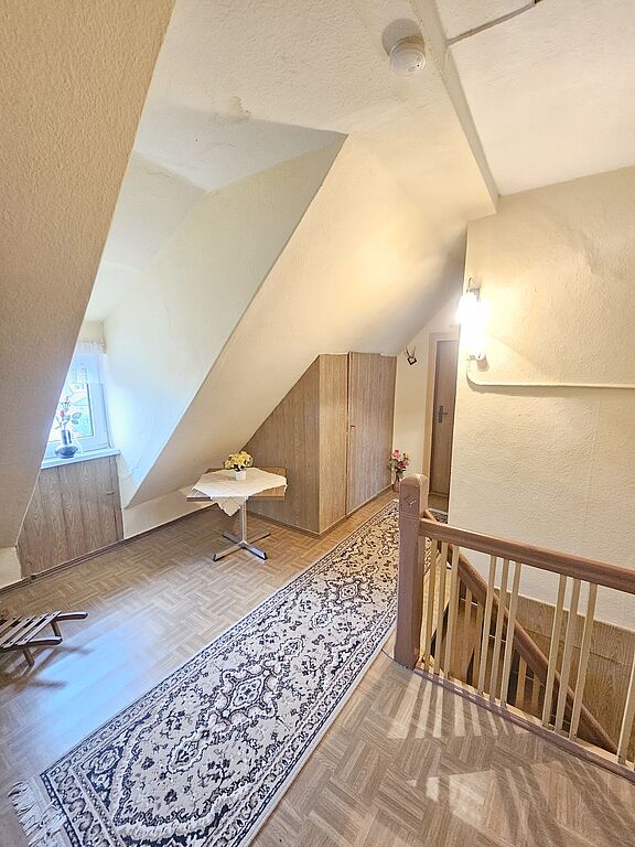 Das Haus bietet vielfältige Möglichkeiten zur individuellen Gestaltung und Renovierung. Dank des großen Grundstücks besteht die Möglichkeit, einen Garten anzulegen oder das Anwesen nach eigenen Vorstellungen zu erweitern. Die solide Bauweise des Hauses sowie die Gas-Heizung stellen eine gute Basis dar, um das Gebäude energetisch zu optimieren. Die zentrale Lage und die vorhandenen Parkplätze machen das Haus besonders attraktiv für Familien oder Käufer, die viel Wert auf viel Platz und Gestaltungsfreiheit legen.