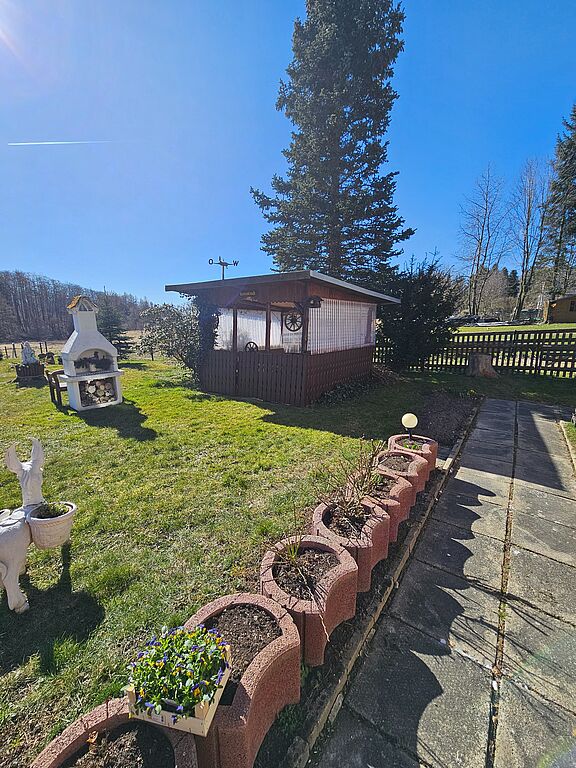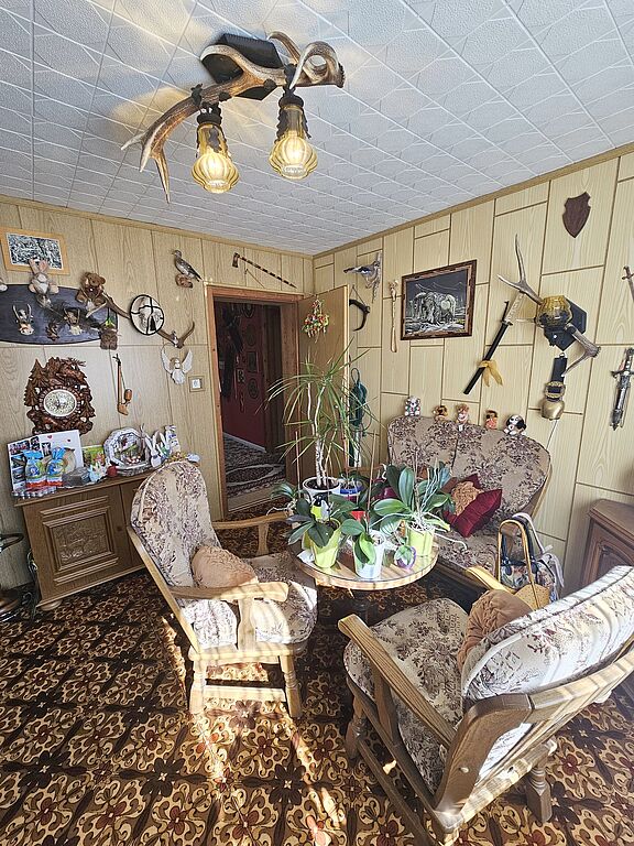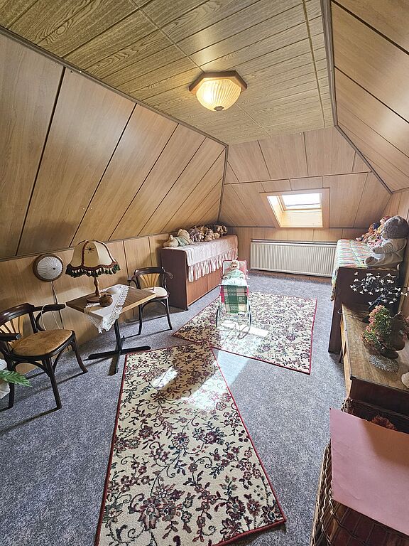 Zusätzlich zum Haus selbst bietet das Grundstück viel Potenzial für Gartenliebhaber oder Familien, die gerne im Freien Zeit verbringen. Es stehen insgesamt 4 Garagen und ein Abstellraum zur Verfügung. Die ruhige Lage und die Nähe zur Natur machen das Haus zu einem idealen Rückzugsort. Mit etwas Renovierung und persönlicher Note könnte dieses Einfamilienhaus zu einem gemütlichen Zuhause für eine glückliche Familie werden.