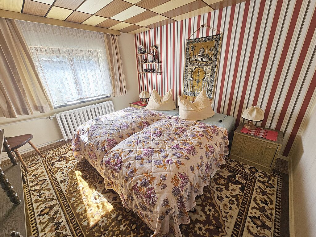 Das Einfamilienhaus aus dem Baujahr 1981 besticht durch seine großzügige Wohnfläche von ca. 160 m² und die insgesamt 7 Zimmer. Mit 5 Schlafzimmern und 3 Badezimmern bietet es ausreichend Platz für eine Familie. Das Kellergeschoss wurde zu einer Ferienwohnung ausgebaut. Das Haus verfügt über zwei separate Eingänge, was eine Teilung der Wohnfläche zu zwei Einheiten ermöglicht. Zudem ist das Gebäude mit einer Öl-Heizung, einem Balkon und mehreren Terrassen ausgestattet. Die Grundstücksfläche beträgt ca. 1.040 m² und bietet somit viel Raum im Freien. Der Gebäudezustand ist renovierungsbedürftig, jedoch wurde das Haus zuletzt im Jahr 2008 modernisiert, indem das Dach erneuert wurde.