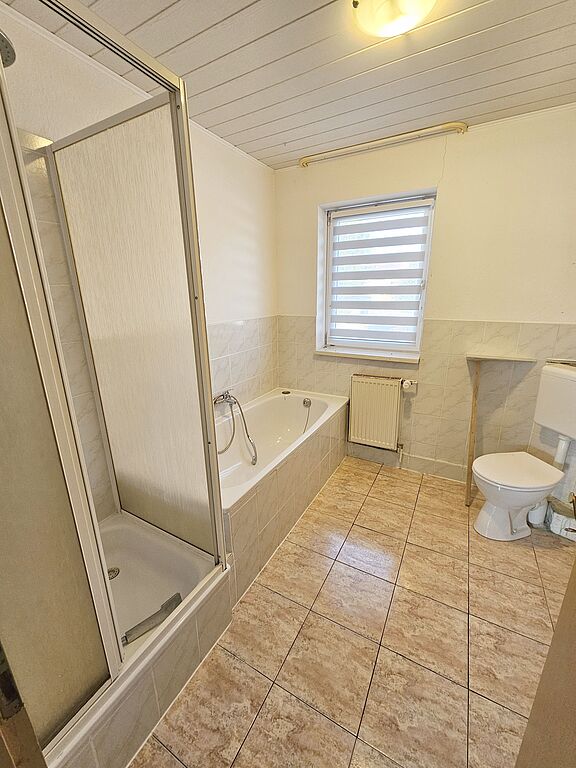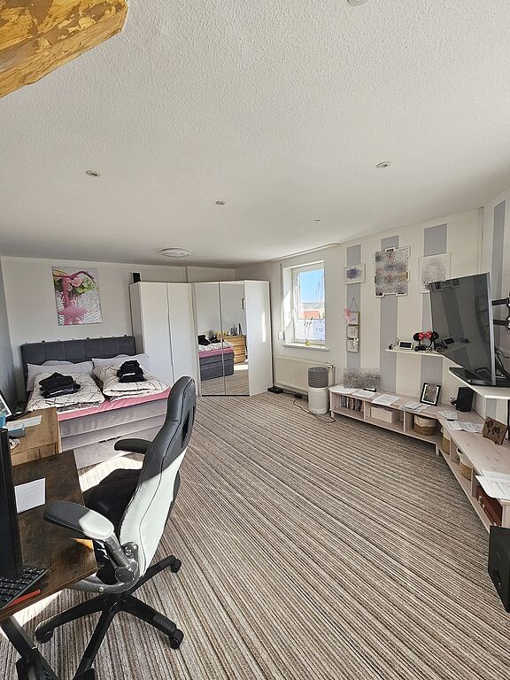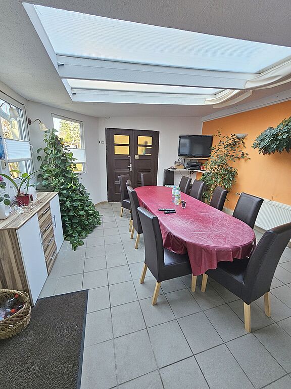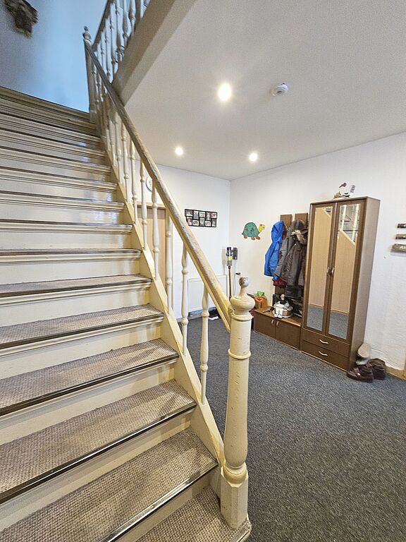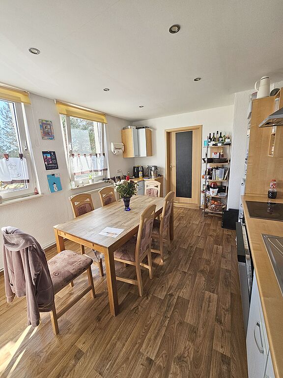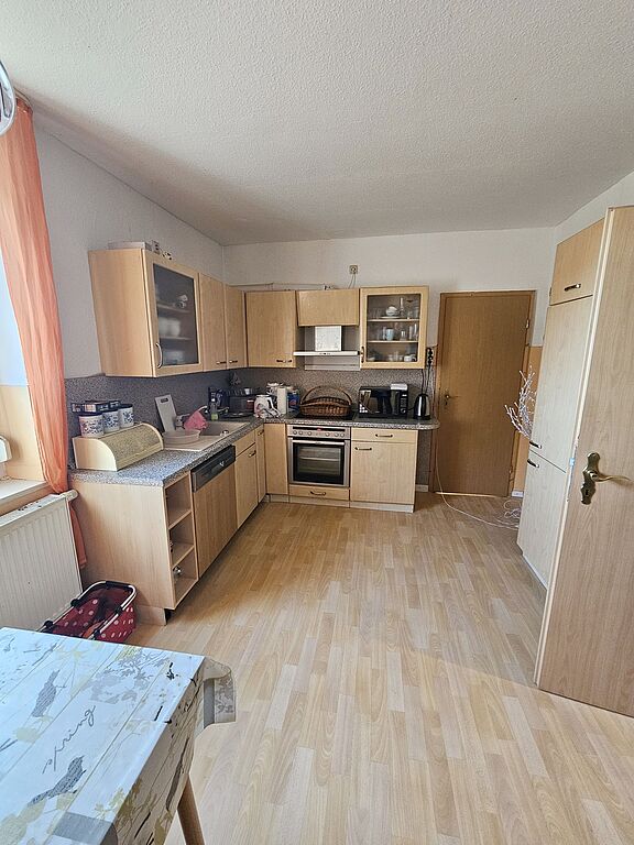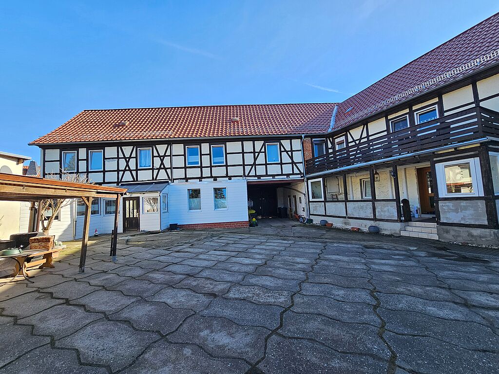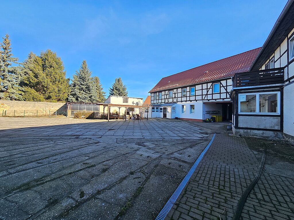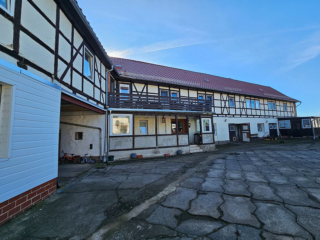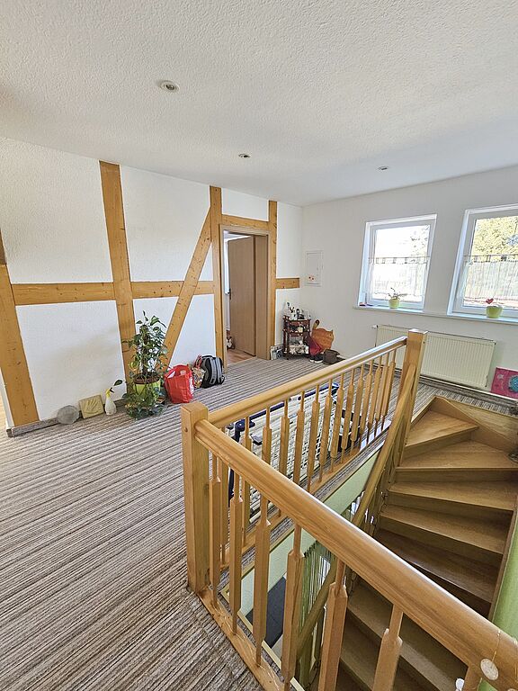 Dieses im Jahr 1899 erbaute und 2013 erweiterte und sanierte, Fachwerkhaus mit einer Wohnfläche von ca. 618 m² und einem Grundstück von ca. 2.674 m² bietet genügend Platz für mehrere Familien. Der Gebäudezustand ist gepflegt und die letzte Modernisierung fand im Jahr 2017 mit Erneuerung der Gasheizung statt. Das zweistöckige Gebäude verfügt über insgesamt 18 Zimmer, verteilt auf 4 Wohneinheiten. Es gibt zudem 5 Parkplätze, inkl. Carports sowie einen Balkon, einen großen Garten und reichlich Nebengelass. Die Gasheizung wird zudem mit einem Schwerkraftkessel sowie Solar und Photovoltaik unterstützt. Auch ein 30 kw Speicher ist vorhanden.