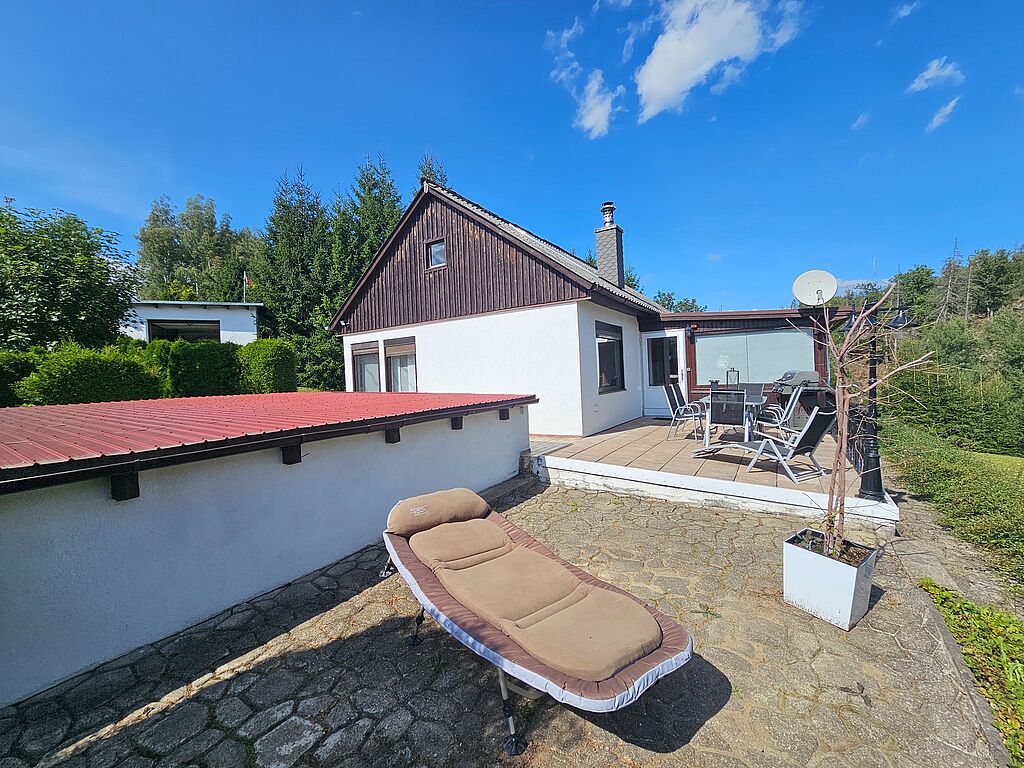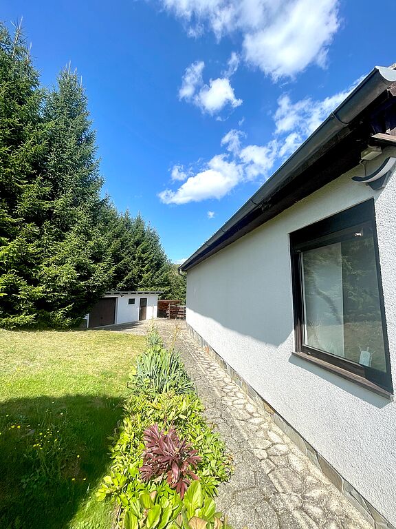 Die angebotene Immobilie ist ein Haus mit einer Wohnfläche von ca. 85 m², erbaut in den 1970er Jahren. Das Gebäude verfügt über 2 Garagen und mindestens 2 Außenstellplätze. Die Beheizung des Gebäudes erfolgt über eine Pelletheizung. Des Weiteren besitzt das Haus eine herrliche Sonnenterrasse mit Blick ins Grüne. Das Objekt ist voll unterkellert. Die Modernisierung fand zuletzt im Jahr 2015 statt. Das Grundstück umfasst eine Fläche von ca. 1.736 m².