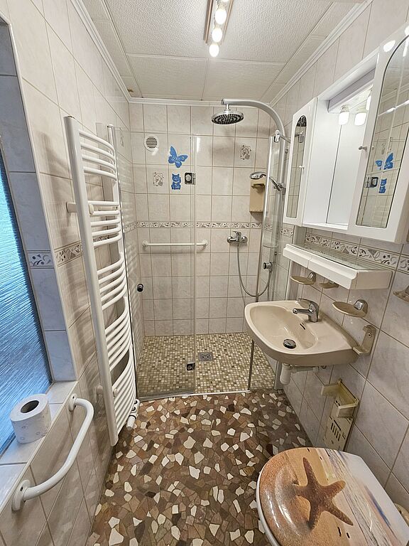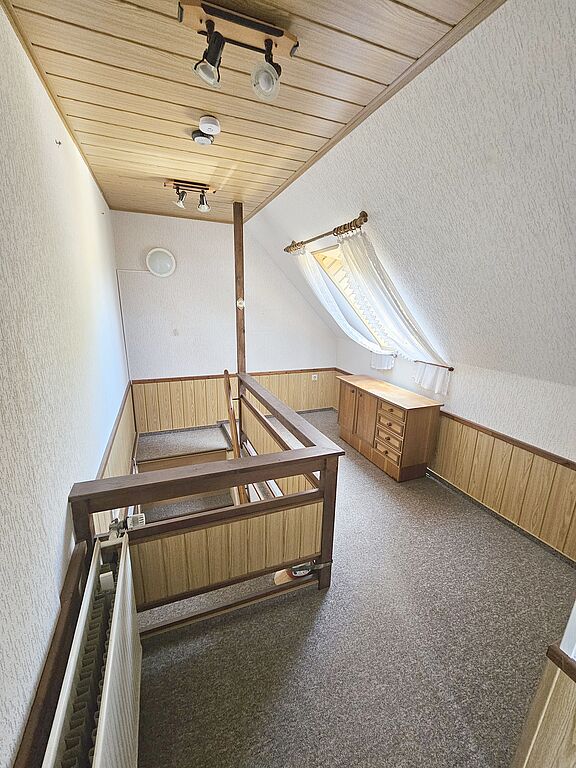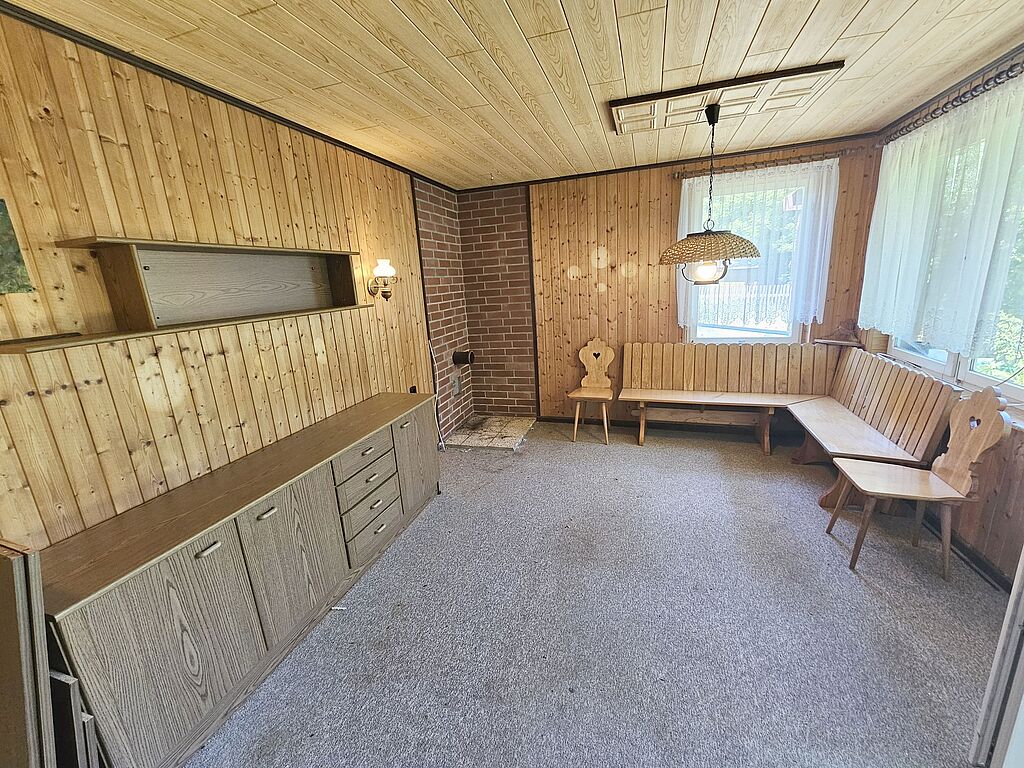Das Haus verfügt über insgesamt 5 Zimmer, eine geräumige Küche und ein Duschbad sowie ein Gäste-WC im Erdgeschoss. Der Keller bietet zusätzlichen Stauraum. Eine Werkstatt und eine Waschküche stehen im Erdgeschoss zur Verfügung. Die Räumlichkeiten sind hell und freundlich gestaltet, mit großen Fenstern, die viel Tageslicht hereinlassen. Die letzte Modernisierung fand im Jahr 2004 statt, wo die Dacheindeckung des Hauses erneuert wurde.